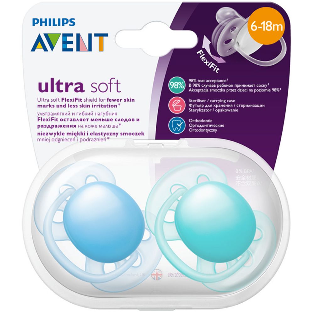 Позаботьтесь о нежной коже малыша, выбрав пустышку Philips Avent ultra soft*. Невероятно мягкий и гибкий нагубник повторяет естественные контуры лица, оставляя меньше следов и раздражения на коже малыша.**