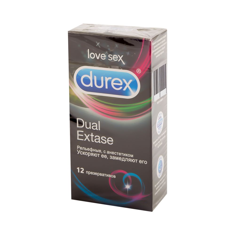 Секс это ни с чем несравнимое удовольствие, а одновременный оргазм партнеров это те же ощущения, усиленные в два раза.Durex Dual Extase создан для того, чтобы оба партнера смогли получить оргазм одновременно! Более 50% женщин жалуются на то, что их партнер достигает максимальной точки удовлетворения гораздо быстрее. Одновременно же оба партнера достигают оргазма лишь в 27% случаев.Анестетик (бензокаин) внутри презервативов Durex Dual Extase способен замедлять эякуляцию мужчин, а ребра и пупырышки на поверхности презерватива помогают усилить стимуляцию и ускорить наступление оргазма женщины. Презервативы Durex Dual Extase ускоряют ее, замедляют его. Любите друг друга. Обоюдное удовольствие главный приоритет здоровых сексуальных отношений!С осторожностью (Меры предосторожности)
