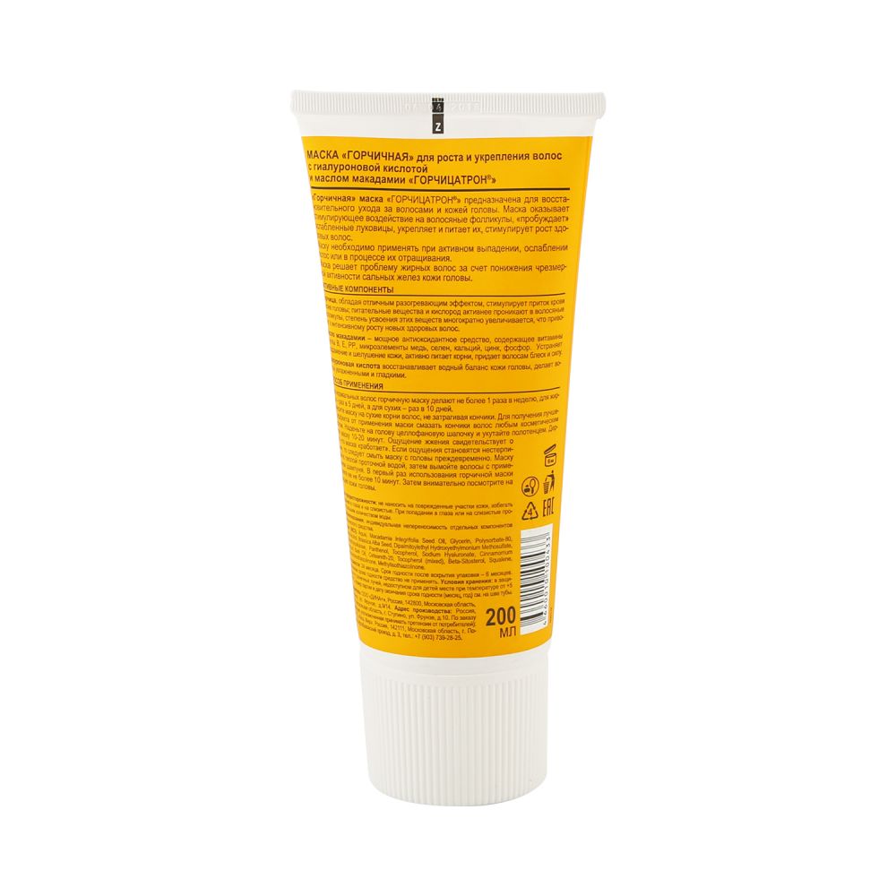 Вода специальной очистки, глицерин, масло макадамии, полисорбат 80, цетеариловый спирт (и) дипальмитоилэтилгидроксиэтиламмония метосульфат (и) цетеарет-20, порошок горчичный, модифицированная гидроксиэтилцеллюлоза, пантенол, витамин Е, эфирное масло корицы, гиалуроновая кислота, метилхлороизотиазолинон (и) метилизотиазолинон, антиоксидант.