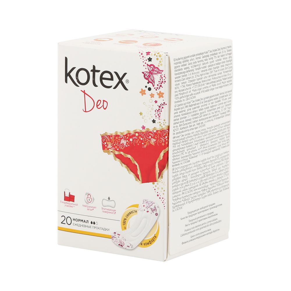 Женские гигиенические ежедневные прокладки Kotex®(Котекс) нормал део обеспечивают комфорт и гигиену каждый день. Мягкая, как хлопок, поверхность, отлично впитывает незначительные выделения, защищает бельё и помогает надолго сохранить ощущение свежести. Прокладки стандартной толщины, ароматизированные, нейтрализуют запах. Тиснение по краям прокладки препятствует её расслоению.