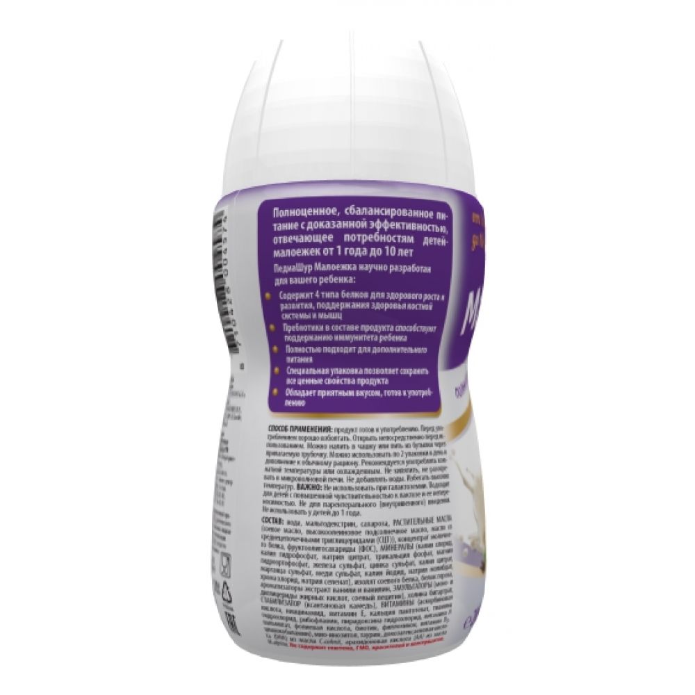 Специализированный диетический продукт для оптимизации питания детей. ПедиаШур 1.0 – полноценный сбалансированный продукт. У детей избирательных в еде («малоежки») повышается риск дефицита ключевых элементов (белка, витаминов и минералов). Затянувшаяся избирательность в еде ребенка может привести к отставанию в развитии. ПедиаШур 1.0 специально разработан для полноценного питания детей от 1 до 10 лет, т.к. он содержит белок, витамины и минералы в количествах помогающих детям полностью реализовать потенциал роста и развития. Эффекты ПедиаШур 1.0 клинически доказаны у детей с избирательным аппетитом и риском недостаточности питания.Показания к применению