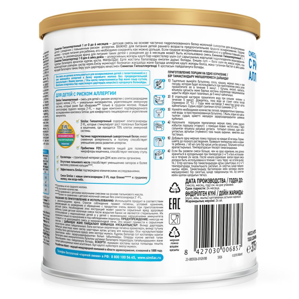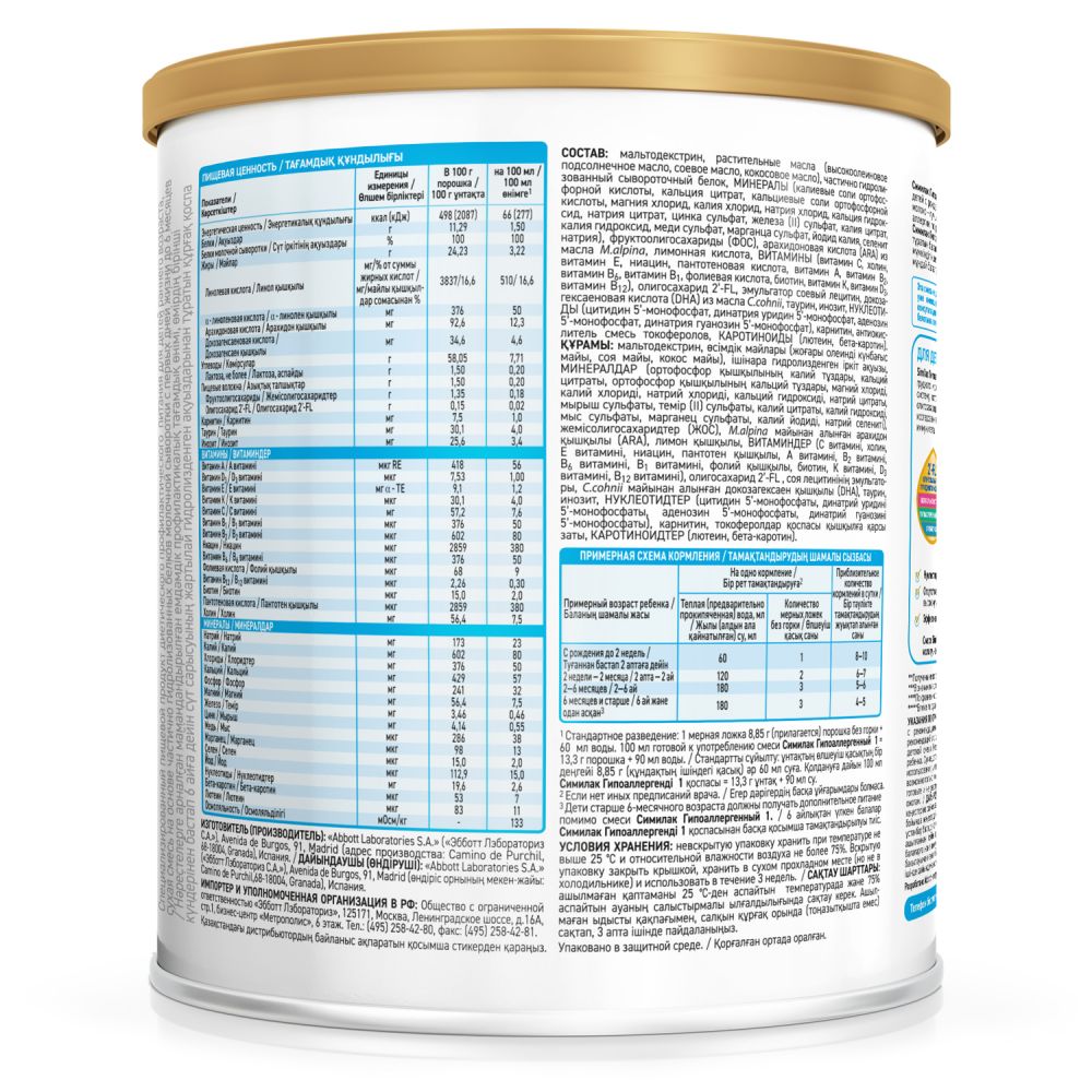 Новое поколение гипоаллергенных смесей с олигосахаридами грудного молокаSimilac Гипоаллергенный — смесь для детей с риском аллергии с олигосахаридами грудного молока 2’-FL1 — уникальным ингредиентом, который ранее был обнаружен2 только в грудном молоке. Новый олигосахарид грудного молока 2’-FL — еще один компонент подтвержденного исследованиями комплекса Similac для комфортного пищеварения и укрепления иммунитета.Similac Гипоаллергенный содержит олигосахариды 2’-FL, которые стимулируют рост полезных бактерий в кишечнике, защищают организм ребенка от инфекций и способствуют укреплению иммунитета.Частично гидролизованный сывороточный белок имеет сниженную аллергенность и поэтому способствует уменьшению риска развития аллергии.Пребиотики FOS являются пищей для полезной микрофлоры кишечника, способствуют мягкому стулу.Нуклеотиды — строительный материал для ДНК всех клеток организма.Отсутствие пальмового масла способствует уменьшению запоров и более высокому усвоению кальция3.