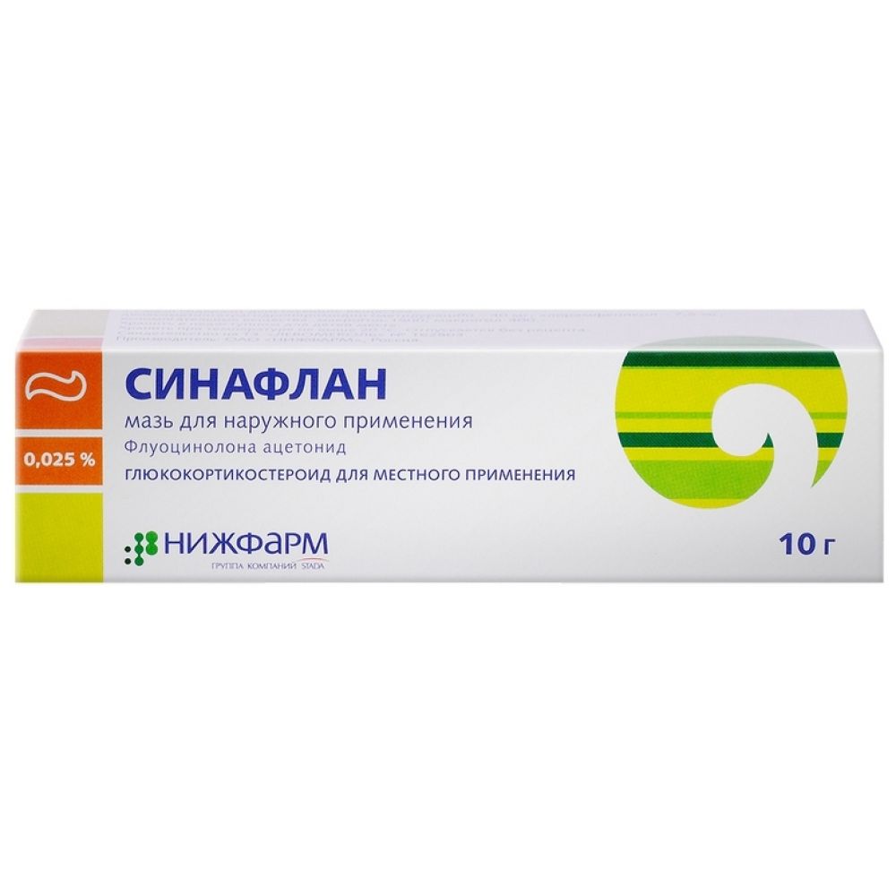 1 г мази содержит: действующее вещество: флуоцинолона ацетонид (синафлан) — 0,25 мг, вспомогательные вещества: пропиленгликоль — 49,75 мг, церезин — 50,00 мг, ланолин — 50,00 мг, вазелин — до 1,0 г.Взаимодействие с другими препаратами