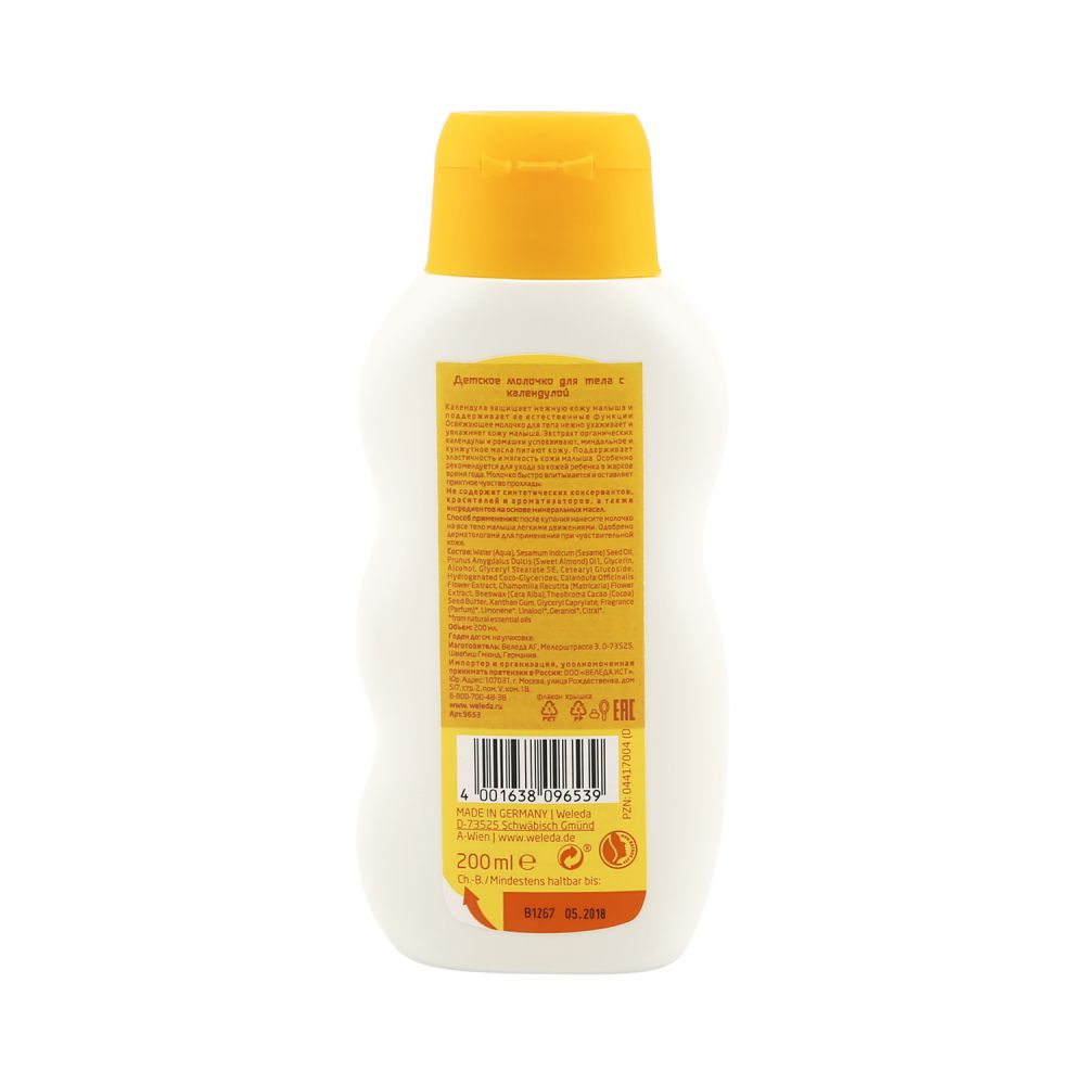 Масло миндаля и кунжута, входящие в состав Молочка для купания с календулой, покрывает кожу ребенка тонким согревающим защитным слоем, который Вы можете ощутить, когда берете малыша на руки после ванны. Этот слой формирует естественную защиту, и вы можете купать малыша каждый день, не нарушая естественный баланс его кожи (обычно акушеры рекомендуют купать малыша через день или два).Экстракт календулы, входящий в состав Молочка для купания, очищает и успокаивает чувствительную кожу. Смесь натуральных лавандового и лимонного эфирных масел придает Молочку для купания нежный свежий аромат.Форма выпуска