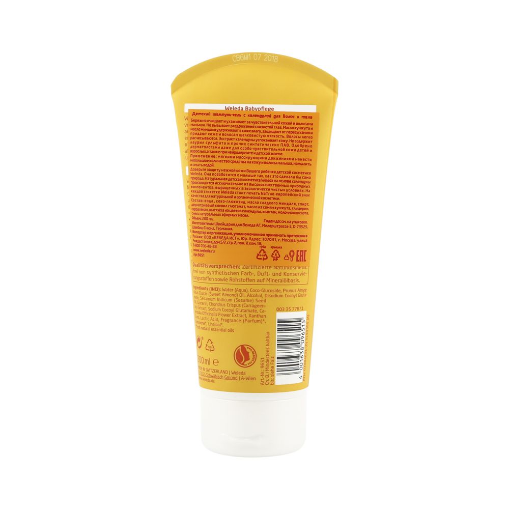 Шампунь-гель с кремовой текстурой бережно очищает кожу и волосы малыша, придавая им мягкость и шелковистый блеск. Мягкая формула на основе природных сахарных тензидов, масел сладкого миндаля и кунжута специально создана для чувствительной детской кожи. Экстракт органической календулы препятствует появлению воспалений. Средство не вызывает сухость кожи и раздражение глаз.Показания к применению